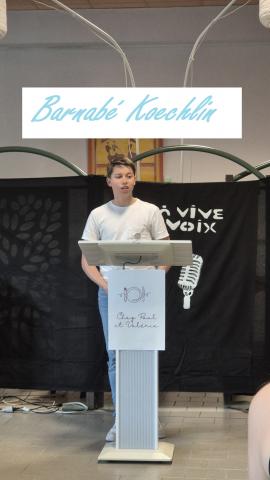 "La vie, c'est comme une boîte de chocolats. On ne sait jamais sur quoi on va tomber." C'est ce sujet qu'a tiré au sort, Barnabé Koechlin, grand gagnant de cette édition 2026. Il a orchestré un discours ciselé au mot près, en filant la métaphore culinaire pour répondre à la question: "L'imprévu est-il une chance ou un obstacle dans la vie?"