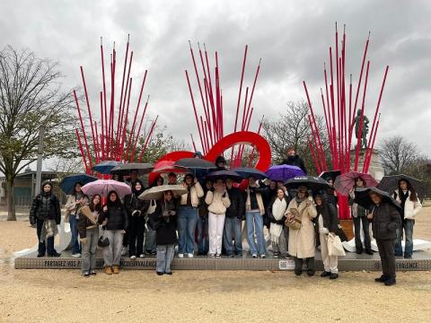 La journée s’est poursuivie par une visite guidée de Valence, malgré une météo très pluvieuse. Sous les parapluies, les élèves ont découvert le kiosque Peynet, le parc Jouvet, les places historiques et plusieurs points emblématiques du centre-ville.