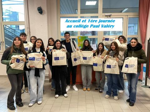 Le lundi matin, un petit-déjeuner d’accueil leur a été offert au collège : chocolat chaud, jus de pomme, pognes et pâtisseries locales… Un moment convivial qui a permis de lancer officiellement cette semaine franco-italienne dans une ambiance chaleureuse.Chaque élève s’est vu remettre un kit de bienvenue composé d’un tote bag Europe Direct, d’une casquette et d’un stylo aux couleurs de l’Union européenne, ainsi que de magazines touristiques pour découvrir Valence et sa région.