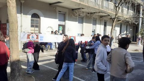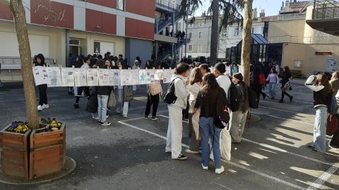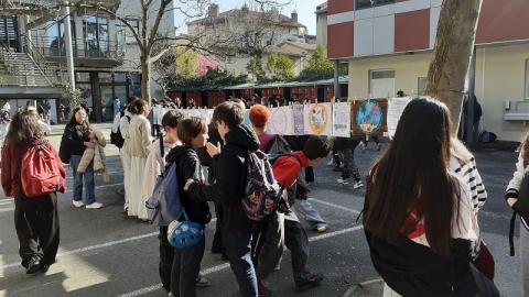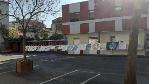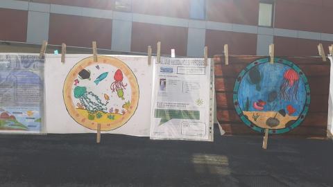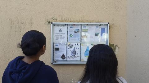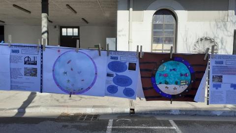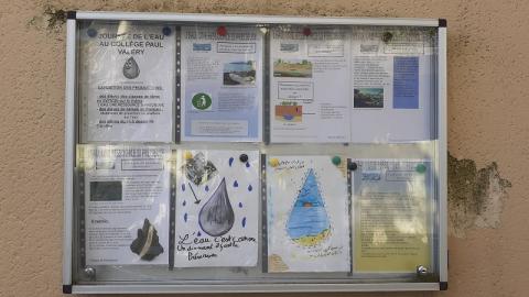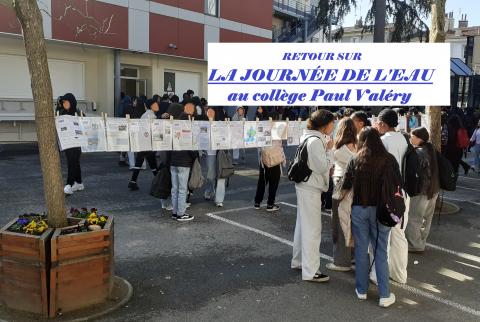 Au lendemain de la Journée Mondiale sur l'EAU, le 22 mars 2026, exposition éphémère sur l'EAU lundi 23 mars 2026 dans la cour du collège: sur une corde avec pinces à linge.