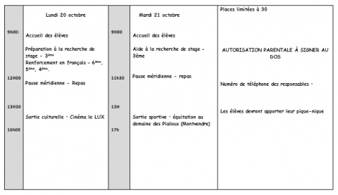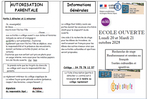 ECOLE OUVERTE 20 et 21 OCTOBRE 2025 AIDE RECHERCHE STAGE 3ème + RENFORCEMENT Français 6e/5e/4e LE PROGRAMME ICI:
