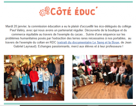 CONFÉRENCE CHEZ ARTISANS DU MONDE POUR NOS ECO-VOLONTAIRES