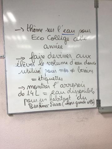 PRÉPARATION ET ENTRAINEMENT à l'oral des Eco-délégués pour la campagne de sensibilisation des élèves du collège à l'importance de l'EAU. Les Eco-délégués informeront leur camarade lors d'une Vie de Classe en présence de leur professeur principal, ou en cours de SVT.